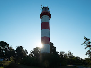 New England has its clapboard; Nida has its houses of red siding with blue and white accents. The town is bordering on a jumbo train set.